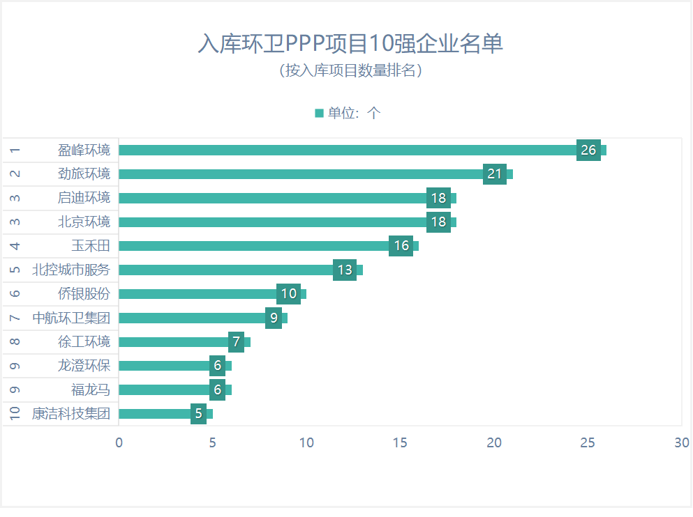已入庫環(huán)衛(wèi)PPP項(xiàng)目領(lǐng)域,誰是最大贏家?入庫項(xiàng)目:財(cái)政部政府和社會(huì)資本合作中心PPP項(xiàng)目庫可以查詢到的項(xiàng)目,包括項(xiàng)目管理庫和項(xiàng)目儲(chǔ)備清單。截止目前,已入庫、且已開標(biāo)的環(huán)衛(wèi)PPP項(xiàng)目總量為302個(gè)。按項(xiàng)目量計(jì)算,盈峰環(huán)境占入庫項(xiàng)目總量的12%在302個(gè)入庫且已開標(biāo)環(huán)衛(wèi)PPP項(xiàng)目中,盈峰環(huán)境入庫項(xiàng)目數(shù)量...