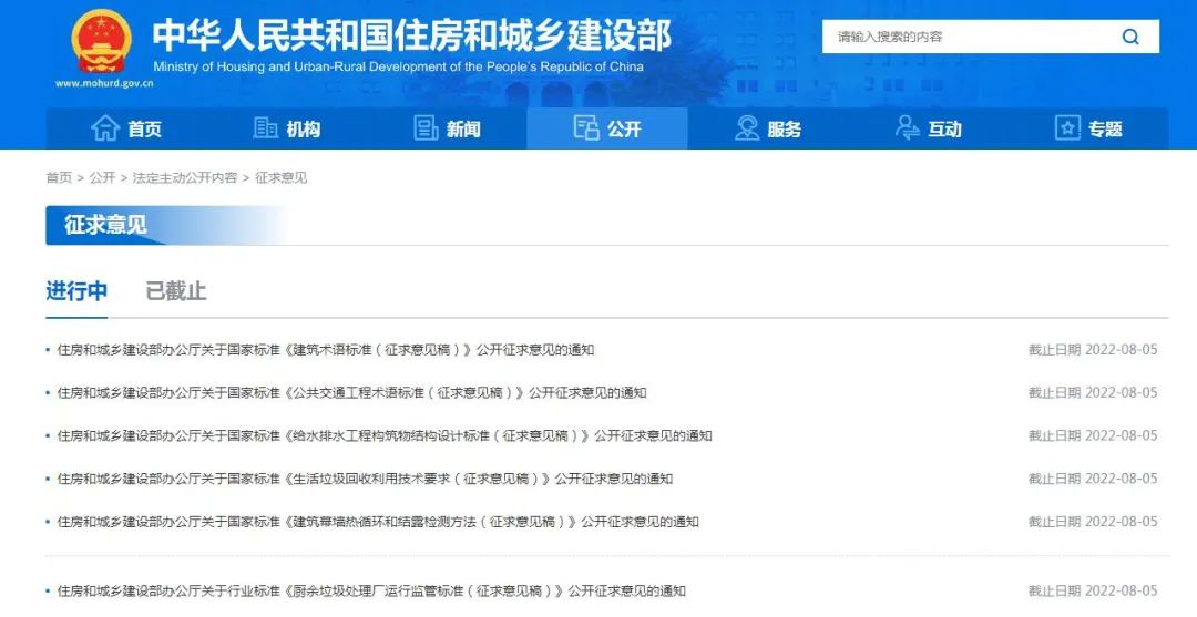 近日,住房和城鄉(xiāng)建設(shè)部辦公廳就國家標(biāo)準(zhǔn)《建筑術(shù)語標(biāo)準(zhǔn)》《公共交通工程術(shù)語標(biāo)準(zhǔn)》《給水排水工程構(gòu)筑物結(jié)構(gòu)設(shè)計(jì)標(biāo)準(zhǔn)》《生活垃圾回收利用技術(shù)要求》《建筑幕墻熱循環(huán)和結(jié)露檢測(cè)方法》《廚余垃圾處理廠運(yùn)行監(jiān)管標(biāo)準(zhǔn)》公開征求意見,意見反饋截止時(shí)間為2022年8月5日。點(diǎn)擊下方藍(lán)色標(biāo)題了解標(biāo)準(zhǔn)詳情?!督ㄖg(shù)語標(biāo)準(zhǔn)》...