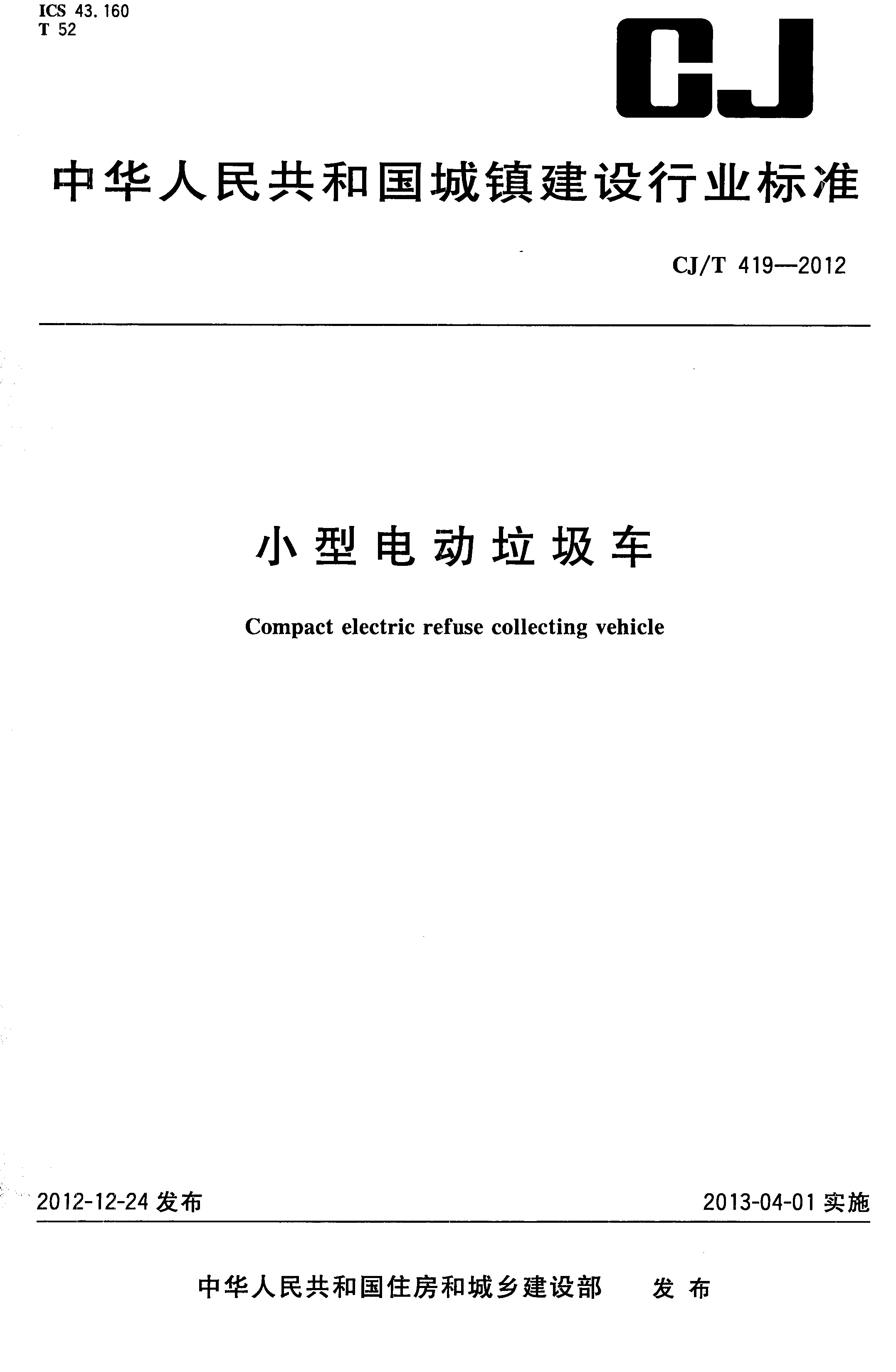 小型電動(dòng)垃圾車(CJ/T 419-2012)