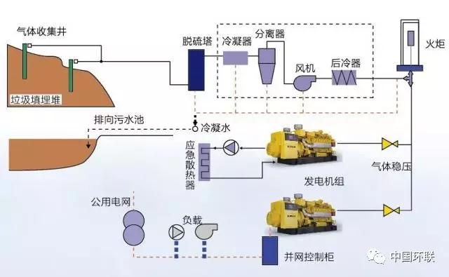 垃圾填埋氣體發(fā)電是將填埋的生活垃圾中因?yàn)樽匀话l(fā)酵降解而釋放出的氣體收集起來(lái),用來(lái)發(fā)電。