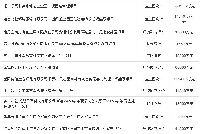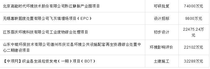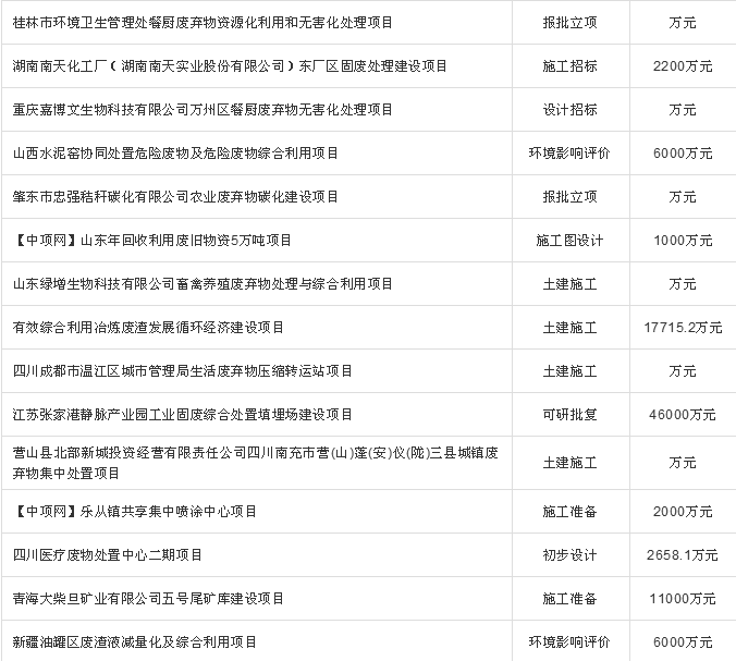 1月份全國(guó)擬建在建固體廢棄物項(xiàng)目匯總