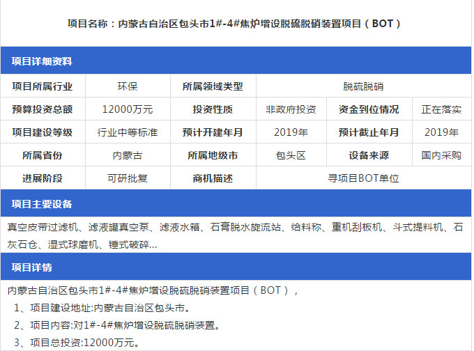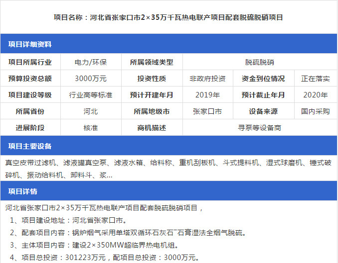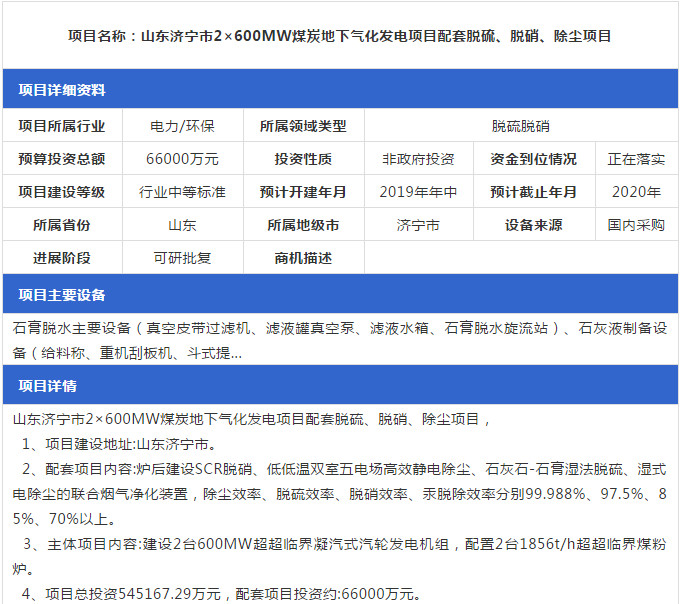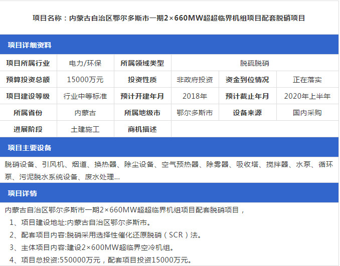 2019年1月份最新的全國脫硫脫硝工程項目匯總情況,包括SCR脫硝項目、SNCR脫硝項目等,詳情如下: