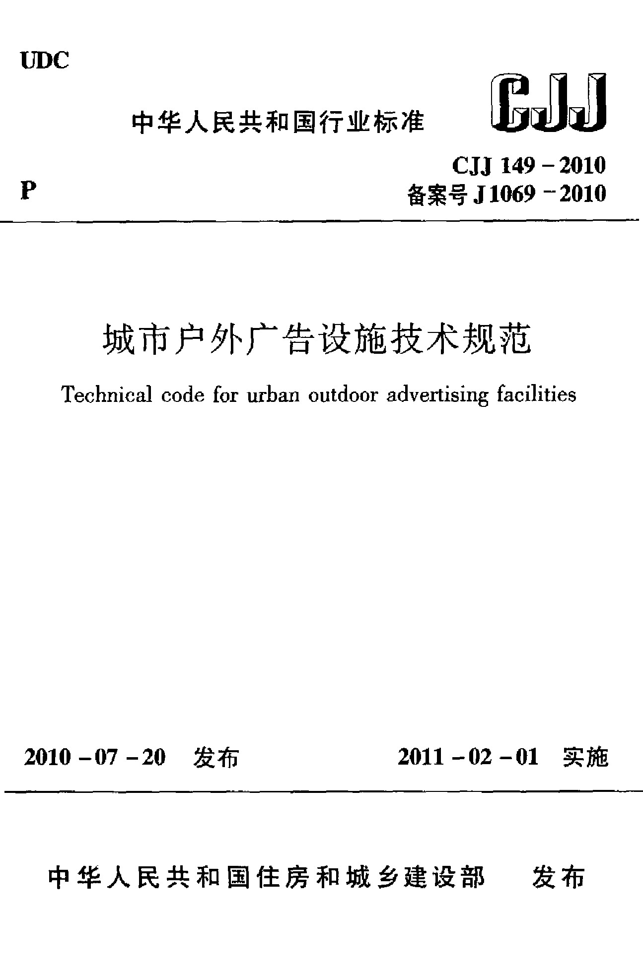 城市戶(hù)外廣告設(shè)施技術(shù)規(guī)范(CJJ 149-2010)