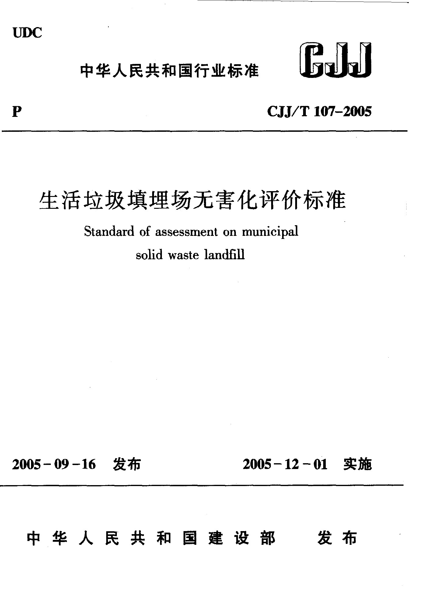 生活垃圾填埋場無害化評價標(biāo)準(zhǔn)(CJJ/T 107-2015)