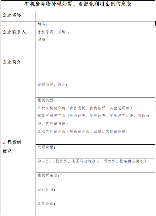 在此背景下,中國環(huán)聯(lián)擬面向行業(yè)征集“有機(jī)廢棄物處理處置、資源化利用典型案例”,征集范圍包括農(nóng)村有機(jī)廢棄物(作物秸稈、畜禽養(yǎng)殖廢棄物等)、市政有機(jī)廢棄物(廚余垃圾、餐廚垃圾、餐廚廢棄油脂、市政污泥等)、工業(yè)有機(jī)廢棄物(制藥有機(jī)廢棄物、酒精廢水等)的處理處置及資源化利用項(xiàng)目案例。請(qǐng)有意向的企業(yè)按附件填寫申報(bào)表,并發(fā)郵件至以下郵箱地址。