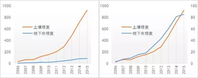 縱觀發(fā)達(dá)國家土壤修復(fù)行業(yè)近年走過的路線以及國家近年出臺(tái)的有關(guān)土壤修復(fù)行業(yè)的法律法規(guī)及指導(dǎo)性文件,我們基本可梳理出我國未來土壤修復(fù)行業(yè)的發(fā)展路徑和趨勢。污染場地是由土壤和地下水共同構(gòu)成的有機(jī)統(tǒng)一體,雨水垂直入滲以及地下水流經(jīng)污染過的土壤時(shí),污染物將從土壤相以溶解和解吸等作用進(jìn)入地下水相,而污染后的地下水在流經(jīng)未污染或已修復(fù)的土壤時(shí),其中的污染物亦會(huì)通過土壤的吸附作用從地下水相傳遞到土壤相上。這種土壤和地下水的相互作用,使得場地修復(fù)中,土壤和地下水聯(lián)合治理尤為重要,重土壤而忽視地下水必然會(huì)導(dǎo)致場地二次污染!事實(shí)上,業(yè)內(nèi)專家人士就此早已達(dá)成共識(shí)。北京建工環(huán)境修復(fù)股份有限公司技術(shù)總監(jiān)馬駿就曾多次指出我國修復(fù)技術(shù)研發(fā)存在的“重土輕水”現(xiàn)象:“未來污染場地的修復(fù)必須土水一體化統(tǒng)籌考慮,否則可能會(huì)事倍功半?!敝锌圃和寥浪侮垦芯繂T也指出,由于地下水的流動(dòng)性,上游被污染地下水會(huì)對(duì)修復(fù)場地造成二次污染。以經(jīng)歷了“拍賣-賠償-修復(fù)-再拍賣” 而著名的武漢赫山地塊為例,資料顯示,位于漢江之濱的赫山地塊前身為武漢農(nóng)藥廠,平均污染深度在1.8米,局部最深達(dá)9米,而該地區(qū)地下水位平均埋深不到2米,這就意味著流經(jīng)該地塊的地下水必然受到了污染,若治理時(shí)僅注重土壤修復(fù),則二次污染將難以避免。而年初曝出的“常隆毒地”事件,因修復(fù)工程翻挖污染土壤,致其中揮發(fā)性污染物擴(kuò)散,致使旁邊的常外學(xué)生身體不適,引發(fā)輿論關(guān)注。資料顯示這塊污染場地地下6米均為污染土壤,而場地內(nèi)的地下水埋深不到1米!如若后期不開展地下水修復(fù)工作,常隆地塊下的污染物就有著隨地下水的流動(dòng)擴(kuò)散至周邊居民區(qū)的風(fēng)險(xiǎn)。然而,由于地下水污染難治理、周期長、隱蔽性強(qiáng)以及缺乏相應(yīng)技術(shù)規(guī)范,實(shí)際污染場地調(diào)查和修復(fù)過程中,為了節(jié)省費(fèi)用,往往只強(qiáng)調(diào)土壤污染,而對(duì)地下水的重視不足。以專利申請(qǐng)指標(biāo)為例,當(dāng)前地下水修復(fù)專利近10來總數(shù)僅為500項(xiàng),遠(yuǎn)低于土壤修復(fù)4000余項(xiàng),受國家環(huán)保宏觀政策水十條和土十條影響,近年來每年申請(qǐng)專利雖逐步增加,2015年申請(qǐng)量為85,而同期土壤專利申請(qǐng)量卻達(dá)952項(xiàng),竟不到土壤專利量的1/10。圖:土壤修復(fù)與地下水修復(fù)專利申請(qǐng)對(duì)比通過上圖還可看出,土壤和地下水修復(fù)專利申請(qǐng)趨勢基本一致,這也側(cè)面反映了二者是一個(gè)有機(jī)整體,不能單獨(dú)人為分割之,從而進(jìn)一步印證了我們關(guān)于土壤地下水聯(lián)合治理的大趨勢。而當(dāng)前地下水專利仍遠(yuǎn)低于土壤修復(fù)專利申請(qǐng),表明了地下水修復(fù)市場的巨大空間,也為相關(guān)公司進(jìn)行相應(yīng)提前布局和搶占先機(jī)提供了機(jī)會(huì)! 圖: 土壤及地下水修復(fù)專利申請(qǐng)關(guān)鍵詞文字云比較甚至,土壤修復(fù)和地下水修復(fù)的專利關(guān)鍵詞中,都能看到二者密不可分的身影。圖:美國超級(jí)基金場地歷年修復(fù)對(duì)象統(tǒng)計(jì)事實(shí)上,美國在場地修復(fù)之初,也曾走過同樣的路線。根據(jù)超級(jí)基金場地逐年修復(fù)對(duì)象統(tǒng)計(jì),美國最早期也只注重土壤修復(fù),隨著對(duì)場地修復(fù)的認(rèn)識(shí)不斷加深而開始重視地下水修復(fù)乃至土壤和地下水聯(lián)合修復(fù),到現(xiàn)在實(shí)現(xiàn)對(duì)場地進(jìn)行系統(tǒng)的修復(fù)和管理。如今土壤和地下水聯(lián)合治理已成為先行國家的業(yè)界共識(shí)。以超級(jí)基金針對(duì)1982-2011年期間對(duì)1468塊污染場地所展開的修復(fù)而言,單獨(dú)針對(duì)土壤修復(fù)的僅占14%,而地下水修復(fù)以及地下水和土壤聯(lián)合修復(fù)則占到了59%。圖:美國超級(jí)基金1468塊場地修復(fù)對(duì)象統(tǒng)計(jì)(1982-2011)考慮到我國國情,盡管短期內(nèi)仍很難改變場地修復(fù)所主導(dǎo)的土壤修復(fù)市場,也難以改變場地修復(fù)中的重土輕水現(xiàn)象,但我們?nèi)哉J(rèn)為土壤地下水修復(fù)聯(lián)合修復(fù)將成為未來趨勢。據(jù)《全國土壤污染狀況調(diào)查公報(bào)》顯示,我國長三角、珠三角、東北老工業(yè)基地等區(qū)域土壤污染問題突出,西南、中南地區(qū)土壤重金屬超標(biāo)問題也比較嚴(yán)重,由此可見南方地區(qū)土壤整體污染更加嚴(yán)重,未來將是我國主要的土壤修復(fù)市場。與此同時(shí),南方地區(qū)地下水位又普遍埋深較淺,如圖示,南方地區(qū)地下水埋深較淺,埋深小于2米,北方地區(qū)總體自東向西埋深增加,多數(shù)地區(qū)在6米以上。因此北方區(qū)域的場地修復(fù),有時(shí)只要把污染場地的土壤修復(fù)好就行,地下水可以不管。但對(duì)于地下水埋深很淺的南方而言,忽視地下水修復(fù)將導(dǎo)致二次污染。因此,隨著國家針對(duì)場地污染立法