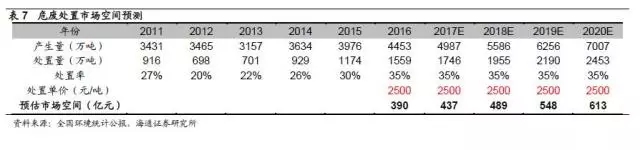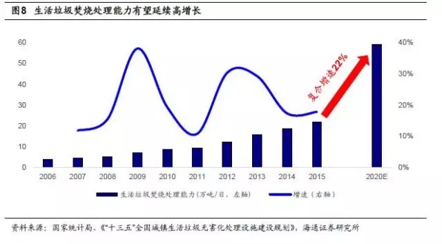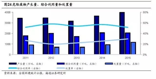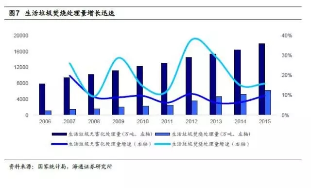 隨著中國城市化進程的加快以及人民生活水平的提高,城鎮(zhèn)生活垃圾迅速增加,垃圾處理缺口巨大,垃圾焚燒將成為主要的生活垃圾處理方式。海通證券研究所預測,“十三五”期間“工程+運營”市場接近3000億。另一方面,危廢處理能力的不足,使危廢行業(yè)擁有廣闊的市場空間。