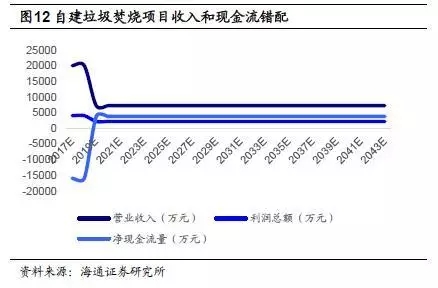 對于自建的垃圾焚燒BOT項目,其收入和現(xiàn)金流錯配,項目建設階段確認的工程收入較多,確認的利潤也通常較高,但沒有實際的現(xiàn)金流入,運營階段項目的收入降低,但是有穩(wěn)定的經營性現(xiàn)金流入。項目回收期較長,考驗公司資金實力和融資能力。