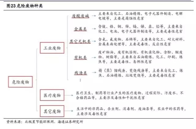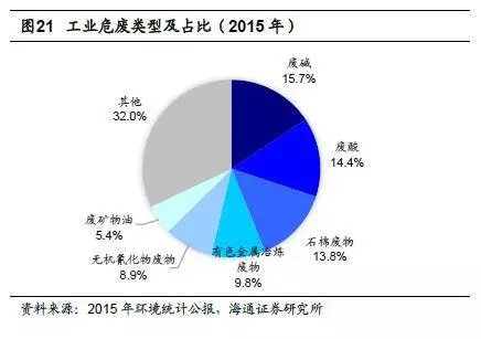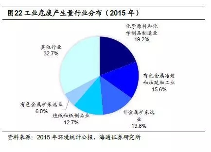工業(yè)危廢是危險廢物的主要來源,具體危廢類型包括廢堿、廢酸、石棉廢物、有色金屬冶煉廢物、無機氰化物廢物、廢礦物油等,從上游行業(yè)看,主要來自化學原料和化學制品制造業(yè)、有色金屬冶煉和壓延加工業(yè)、非金屬礦采選業(yè)、造紙和紙制品業(yè)、有色金屬礦采選業(yè)等。