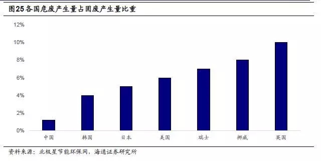 另一方面,我國危廢的實際產生量可能遠遠高于環(huán)境統(tǒng)計年報的統(tǒng)計數據,很多危廢產生量未進入國家統(tǒng)計口徑。根據2010年發(fā)布的《第一次全國污染源普查公報》,2007年全國工業(yè)危廢產量為4573.69萬噸,已遠超2015年環(huán)境統(tǒng)計年報的值。根據國外經驗,危廢產生量占固廢的比重基本都在4%以上,英國更是達到10%,參考日本、韓國的數據,假設中國危廢實際產生量占固廢比重為4%,基于環(huán)境統(tǒng)計年報數據,我國2015年工業(yè)危廢產生量大約為1.3億噸,尚有約9000萬噸的工業(yè)危廢沒有被納入統(tǒng)計口徑,差異主要來自于危廢產生企業(yè)對危廢的少報瞞報,部分危廢流向沒有危廢經營資質的企業(yè)處置。若以危廢實際產生量來看,目前危廢的有效綜合利用處置處置率還非常低,提升空間大。