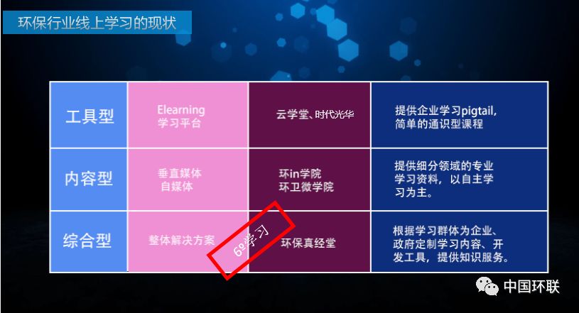 當(dāng)前環(huán)保行業(yè)人才缺口達(dá)300萬,且存在現(xiàn)有人員崗位技能合格率低以及企業(yè)和個人自我賦能乏力的問題。大型企業(yè)在提升工作人員技能方面,一般采取企業(yè)內(nèi)訓(xùn)、購買培訓(xùn)服務(wù)及外出參加培訓(xùn)的方式,但95%的中小微企業(yè)由于資金、管理機制等方面的不足,面臨員工培訓(xùn)機制不完善的困境。對此,阮洪銀提出了6o學(xué)習(xí)的模式:即將終身學(xué)習(xí)、系統(tǒng)化學(xué)習(xí)、組織化學(xué)習(xí),學(xué)習(xí)與愛好多重,學(xué)習(xí)與生活多重,多對多,老師與學(xué)生角色多重,學(xué)習(xí)與營銷多重等六維度相結(jié)合,重新定義“知識”含義與獲取路徑,重新定義企業(yè)商業(yè)信息宣發(fā)路徑。
