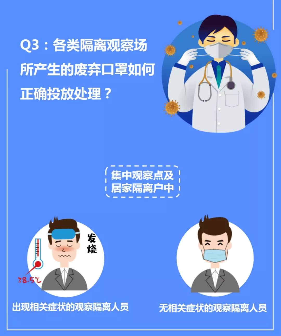 出現(xiàn)新冠病毒肺炎相關癥狀的觀察隔離人員立即送定點醫(yī)院醫(yī)治,其當天產生的廢棄口罩,則需收集在感染性的醫(yī)療廢棄物垃圾袋內,納入醫(yī)療廢棄物統(tǒng)一進行無害化處理。