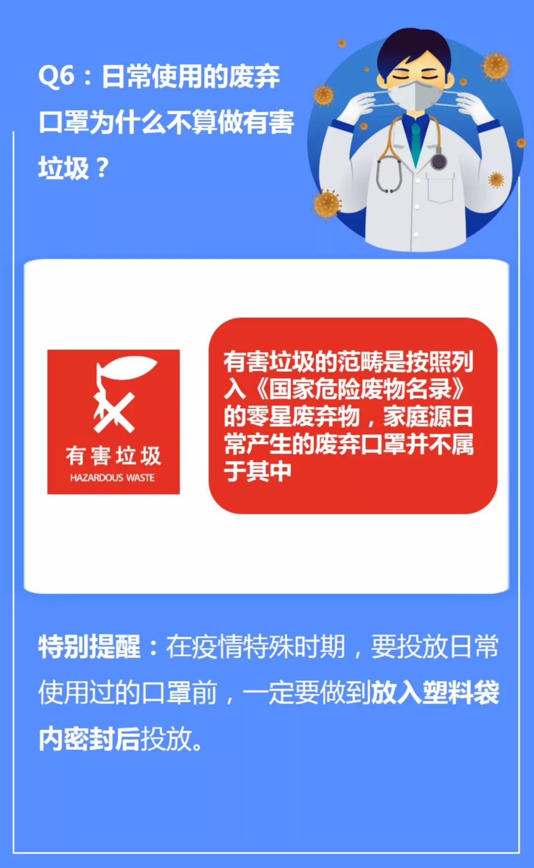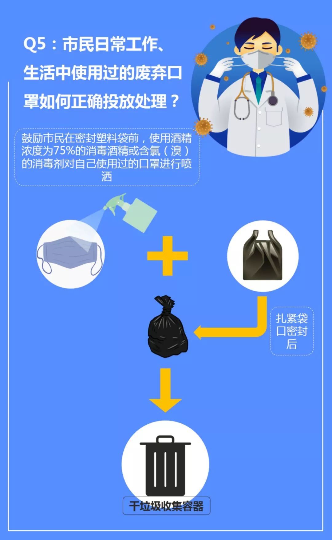 所以市民在日常工作、生活中使用過的廢棄口罩,建議在正確摘下后放入塑料袋,扎緊袋口密封后投放在居住區(qū)的干垃圾容器內。各區(qū)綠化市容管理部門會落實作業(yè)單位及時清運,降低和減少在收集、運輸、處置階段產生二次污染的風險。
