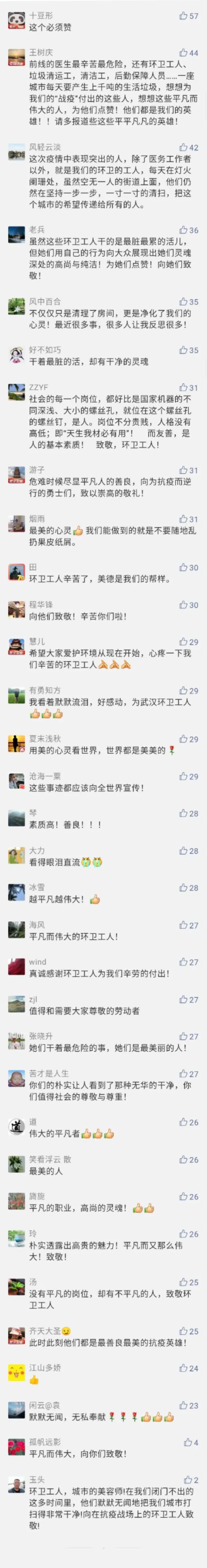“每天的環(huán)衛(wèi)工作比平時累得多,但大家沒有怨言,這是我們這座城市的關(guān)鍵時刻,我們不挺身而出,還有誰能挺身而出?”