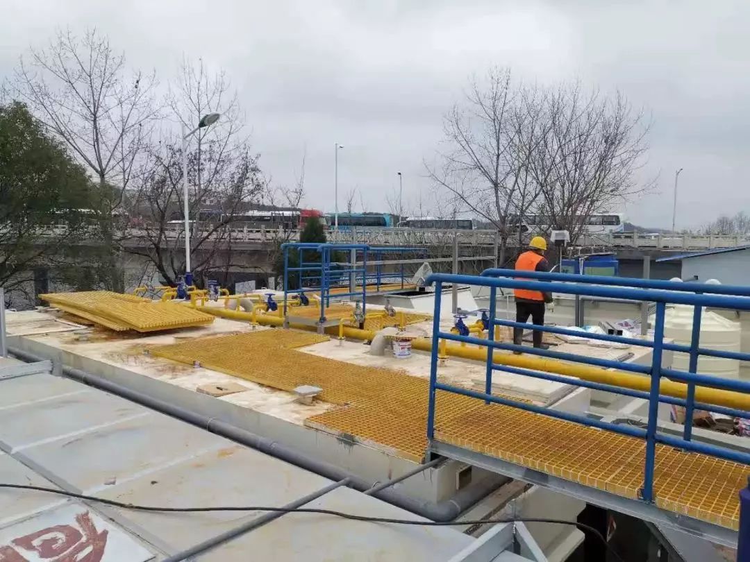 武漢火神山醫(yī)院污水處理廠已建成,武漢市生態(tài)環(huán)境局人員在火神山醫(yī)院現(xiàn)場協(xié)調(diào)督導(dǎo)在線監(jiān)測站房及設(shè)備建設(shè)事宜。