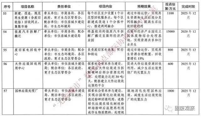“無(wú)廢城市”試點(diǎn)盛宴的鍋蓋揭開(kāi)據(jù)第一財(cái)經(jīng)記者了解,“11+5”個(gè)試點(diǎn)城市和地區(qū)的“無(wú)廢城市”建設(shè)試點(diǎn)實(shí)施方案,均需通過(guò)專家委員會(huì)專家評(píng)審。去年9月,實(shí)施方案通過(guò)了評(píng)審,但仍需根據(jù)評(píng)審專家組意見(jiàn)和建議修改完善。今年3月,“11+5”個(gè)試點(diǎn)城市和地區(qū)的“無(wú)廢城市”建設(shè)試點(diǎn)實(shí)施方案最終定稿,盛宴的鍋蓋揭開(kāi)了。根據(jù)《深圳市“無(wú)廢城市”建設(shè)試點(diǎn)實(shí)施方案》,試點(diǎn)各項(xiàng)任務(wù)所需資金由財(cái)政保障。編制國(guó)土空間規(guī)劃時(shí),應(yīng)前瞻預(yù)留固體廢物處理處置設(shè)施用地。到2020年底,固體廢物全部實(shí)現(xiàn)無(wú)害化處置。人均生活垃圾產(chǎn)生量趨零增長(zhǎng),工業(yè)固體廢物產(chǎn)生強(qiáng)度比2018年下降5%。到2025年,“無(wú)廢城市”主要指標(biāo)達(dá)到國(guó)際先進(jìn)水平。原生生活垃圾全量焚燒和零填埋。到2035年,一般工業(yè)固體廢物綜合利用率達(dá)到98%,房屋拆除廢棄物資源化利用率達(dá)到98%。深圳將建立布局合理、交售方便、收購(gòu)有序的一般工業(yè)固體廢物回收網(wǎng)絡(luò);到2020年,新增2個(gè)以上工程渣土泥砂分離綜合利用項(xiàng)目,建筑廢棄物綜合利用能力達(dá)到1000萬(wàn)立方米/年。鼓勵(lì)危險(xiǎn)廢物產(chǎn)生量大的企業(yè)自行配套建設(shè)危險(xiǎn)廢物資源化利用設(shè)施。重慶市相關(guān)方案提出,到2020年,完成工程渣土填埋場(chǎng)、裝修垃圾填埋場(chǎng)及監(jiān)管平臺(tái)建設(shè)。政府投融資建設(shè)項(xiàng)目使用建筑垃圾資源化再生產(chǎn)品替代用量不少于30%。到2020年,完成一批礦山地質(zhì)環(huán)境生態(tài)修復(fù)工程建設(shè)。重慶還將建立多元化、多層次的資金投入保障體系,引導(dǎo)和鼓勵(lì)社會(huì)資本加大對(duì)固體廢物處理處置設(shè)施投入力度。重慶市表示,將建立多元化、多層次的資金投入保障體系。市級(jí)財(cái)政落實(shí)市級(jí)層面“無(wú)廢城市”建設(shè)試點(diǎn)工作經(jīng)費(fèi)保障,將相關(guān)經(jīng)費(fèi)納入預(yù)算。市級(jí)有關(guān)部門對(duì)接國(guó)家部委,爭(zhēng)取國(guó)家資金支持。重慶市主城區(qū)政府(管委會(huì))加強(qiáng)“無(wú)廢城市”建設(shè)試點(diǎn)工作的資金投入,結(jié)合生活垃圾收運(yùn)處理設(shè)施、污水污泥處置設(shè)施、建筑垃圾消納設(shè)施等重點(diǎn)工程建設(shè),加大財(cái)政資金統(tǒng)籌整合力度。創(chuàng)新重點(diǎn)領(lǐng)域固體廢物投融資機(jī)制,建立循環(huán)經(jīng)濟(jì)融資平臺(tái),加強(qiáng)政、銀、企信息對(duì)接,引導(dǎo)和鼓勵(lì)社會(huì)資本加大對(duì)固體廢物處理處置設(shè)施投入力度。北京經(jīng)濟(jì)技術(shù)開(kāi)發(fā)區(qū)的方案則提出,到2025年,開(kāi)發(fā)區(qū)“無(wú)廢城市”建設(shè)模式在“亦莊新城”范圍內(nèi)全面鋪開(kāi),落地一批先進(jìn)的固體廢物處理工程設(shè)施,基本實(shí)現(xiàn)依靠區(qū)內(nèi)基礎(chǔ)設(shè)施處理處置固體廢物問(wèn)題,初步實(shí)現(xiàn)園區(qū)趨零排放。創(chuàng)新融資方式,支持社會(huì)資本參與、發(fā)行綠色債券,擴(kuò)展綠色發(fā)展資金項(xiàng)目等,用于支持固體廢物源頭減量、資源化利用和安全處置體系建設(shè)。根據(jù)紹興市的方案,該市將重點(diǎn)培育一批市級(jí)綠色工廠和綠色園區(qū),持續(xù)打造一批綠色設(shè)計(jì)產(chǎn)品。2020年12月底前,累計(jì)實(shí)施國(guó)家級(jí)綠色制造系統(tǒng)集成項(xiàng)目、創(chuàng)建國(guó)家級(jí)綠色制造名單15個(gè)以上;創(chuàng)建市級(jí)以上綠色工廠49家;創(chuàng)建市級(jí)以上綠色園區(qū)、循環(huán)化改造園區(qū)8家。以動(dòng)力電池、電器電子產(chǎn)品、汽車、鉛酸蓄電池等為重點(diǎn),落實(shí)生產(chǎn)者責(zé)任延伸制,到2020年12月底,基本建成廢棄產(chǎn)品逆向回收體系。在要素投入方面,紹興市表示,將加強(qiáng)財(cái)政資金統(tǒng)籌整合,明確“無(wú)廢城市”建設(shè)試點(diǎn)資金范圍和規(guī)模。將固體廢物分類收集及無(wú)害化處置設(shè)施納入城市基礎(chǔ)設(shè)施和公共設(shè)施范圍,保障設(shè)施用地。鼓勵(lì)金融機(jī)構(gòu)在風(fēng)險(xiǎn)可控前提下,加大對(duì)“無(wú)廢城市”建設(shè)試點(diǎn)的金融支持力度。建立紹興市“無(wú)廢城市”技術(shù)支撐服務(wù)專家?guī)臁?/span>“無(wú)廢”最高境界是實(shí)現(xiàn)生命輪回《“十三五”全國(guó)城鎮(zhèn)生活垃圾無(wú)害化處理設(shè)施建設(shè)規(guī)劃》提出,“十三五”期間全國(guó)規(guī)劃新增生活垃圾無(wú)害化處理能力50.97萬(wàn)噸/日(包含“十二五”續(xù)建12.9萬(wàn)噸/日),設(shè)市城市生活垃圾焚燒處理能力占無(wú)害化處理總能力的比例達(dá)到50%,東部地區(qū)達(dá)到60%。生活垃圾處理行業(yè)的前端包括垃圾的收集、分類和運(yùn)輸,一般由市政環(huán)衛(wèi)部門負(fù)責(zé)。生活垃圾處理行業(yè)市場(chǎng)空間較大,具有資金、技術(shù)、規(guī)模優(yōu)勢(s