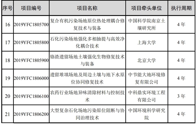 國家重點研發(fā)計劃“場地土壤污染成因與治理技術”重點專項2019年度指南擬立項項目公示清單