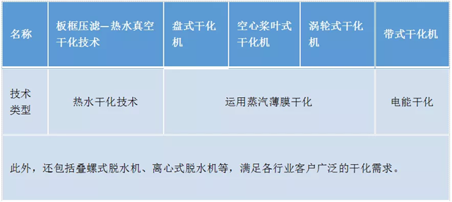 污泥干化可分為機械干化和熱干化兩大類型,機械干化是通過機械脫水設(shè)備進行物理干化的工藝,因其發(fā)展歷史悠久,現(xiàn)在市場上已出現(xiàn)板框、槳葉和原盤式干化機。熱干化顧名思義是利用熱源對污泥直接或間接進行水分蒸發(fā)干化,直接制造熱源的成本通常比機械干化高。