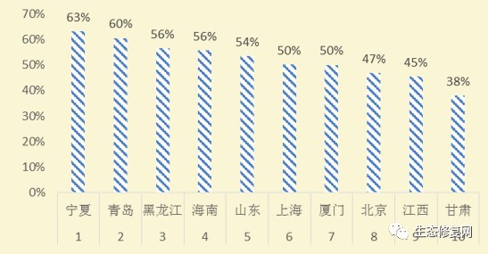 “十三五”擬封場(chǎng)處理能力占當(dāng)前處理能力比例排名前十的省或直轄市