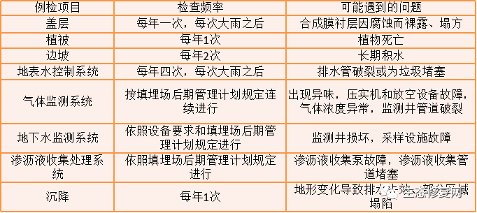 老舊填埋場(chǎng)例行檢查項(xiàng)目、檢查頻率和可能遇到的問(wèn)題2、開(kāi)展老舊填埋場(chǎng)風(fēng)險(xiǎn)評(píng)估工作