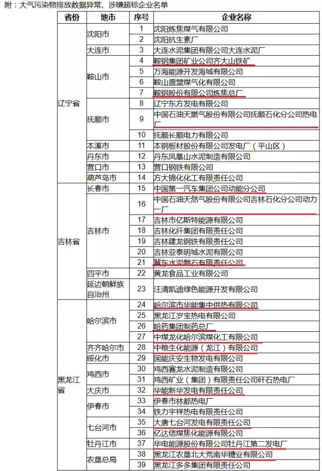 ▲10月,東北地區(qū)大氣污染物涉嫌超標(biāo)排放的39家企業(yè)名單大企業(yè)本應(yīng)是遵紀(jì)守法的模范,在環(huán)保方面做表率,帶頭履行社會(huì)責(zé)任,然而卻涉嫌超標(biāo)排放,實(shí)屬不該。一是集團(tuán)缺乏有效監(jiān)管,環(huán)保責(zé)任沒(méi)有落實(shí)到位,這屬于管理不善。二是雖然明知下屬企業(yè)超標(biāo)排污卻聽(tīng)之任之,沒(méi)有采取措施阻止污染,這屬于縱容、包庇。無(wú)論是哪種情況,都表明一些大企業(yè)、大集團(tuán)在履行環(huán)保責(zé)任方面存在缺失。