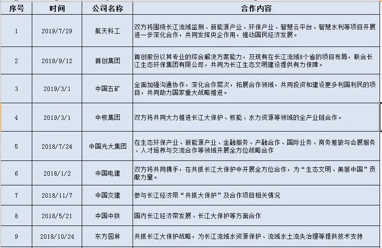 據(jù)不完全統(tǒng)計,截止2020年4月,政府方面:有 7個?。ㄊ校┘?1個市縣;企業(yè)方面:有多家基建、環(huán)保企業(yè)及金融機構(gòu)簽訂長江大保護框架協(xié)議。