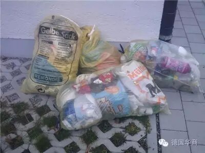 德國人的日常生活中垃圾大致可以分為六類:生物垃圾(Bioabfall oder Biomüller)、廢紙(Altpapier)、包裝袋(Gelber Sack)、有毒廢物(Giftmobil)、廢舊玻璃(Glas)和其他垃圾(Restabfall)。每戶人家至少有黑色垃圾箱(Restabfall雜項垃圾);黃色垃圾箱(Gelbe Sack或者只是黃色塑料袋,可在市鎮(zhèn)指定地點領(lǐng)?。悍胖盟芰掀俊b袋、易拉罐、牛奶盒等);棕色垃圾箱(Bioabfall生物垃圾:廚余,包括咖啡濾紙、茶包及花園廢物,樹枝樹葉剪下的野草等);藍(lán)色或綠色垃圾箱:廢紙(Altpapier)。有毒廢物(Giftmobil)、廢舊玻璃(Glas)都是在指定場所丟置,玻璃瓶還要根據(jù)白(就是透明的)、綠、咖啡,丟不同顏色的箱子。