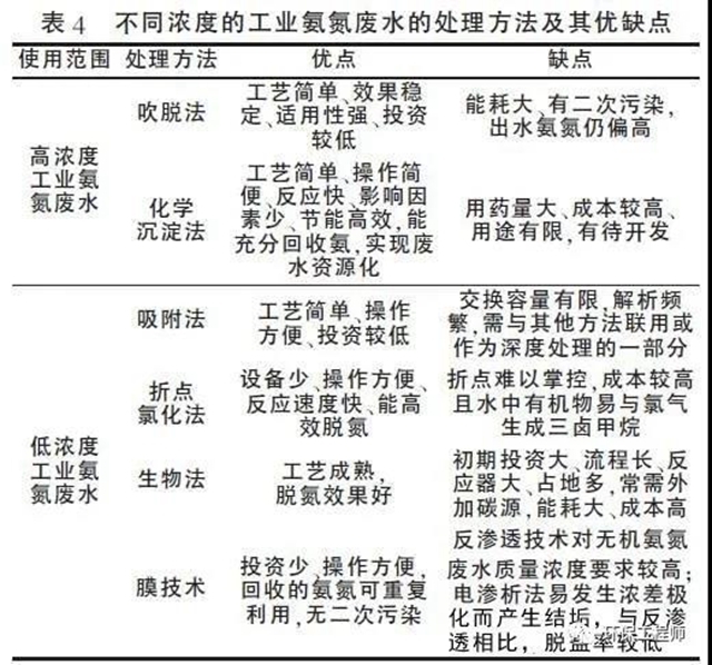 不同氨氮廢水處理方法優(yōu)缺點比較見表4。