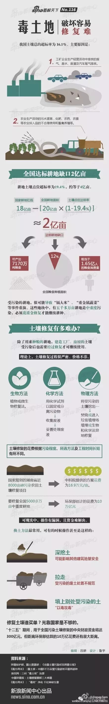2016-12-09 全球農(nóng)業(yè)趣聞英媒稱,中國(guó)將展開全國(guó)性調(diào)查,以查明重金屬、化學(xué)物質(zhì)和其他有毒污染物熱點(diǎn)區(qū)域。目前中國(guó)正試圖清理土壤污染,這可能需要投入1萬億美元。