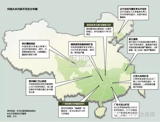 財(cái)新網(wǎng)記者根據(jù)實(shí)地探訪和公開發(fā)表的論文,整理出了一份《中國(guó)大米污染不完全分布圖》。該分布圖顯示,遼寧、湖南、浙江、江西、四川、貴州、廣東、廣西等省份的部分地區(qū),不同程度地存在重金屬污染問題,其中絕大多數(shù)都存在鎘污染,并且以廠礦地區(qū)為主。