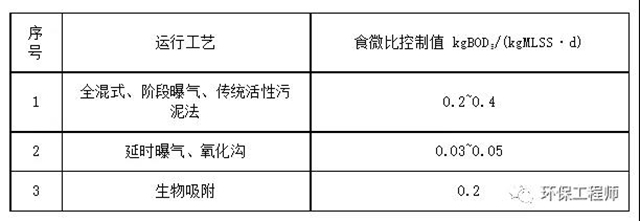 AO脫氮工藝F/M范圍在0.1~0.15范圍,食微比超出指導范圍,過低往往造成污泥活性不佳,降低污染物的去除率。食微比過高,過多的碳源無法代謝進入曝氣池,會導致硝化反應的異常,嚴重時崩潰。