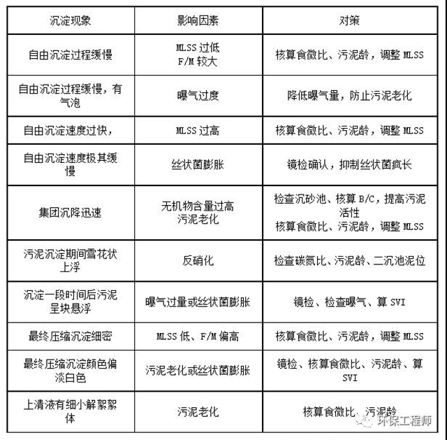 SV30即30分鐘活性污泥沉降比,正規(guī)的做法是用1000mL量筒取樣,靜置30分鐘后,觀測沉淀污泥占整個混合液的體積比例,單位是%。SV30可較直觀的反應目前的工藝效果,是重要的檢測參數(shù);發(fā)生工藝異常時,也應首先對這個指標進行觀測。