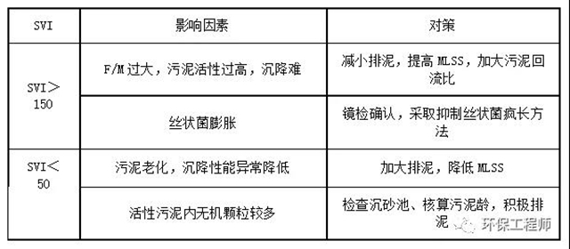 SVI主要反映污泥的松散程度,當MLSS很高時,僅用SV判斷污泥沉降性是不準確的,必須結合SVI。對SVI的調控主要通過對MLSS的調整。