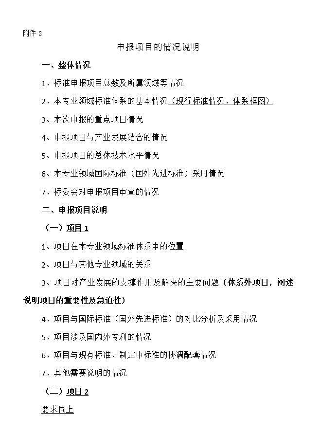 a.申報(bào)項(xiàng)目的總體情況說明(一式兩份,附電子版),具體要求見附件2。