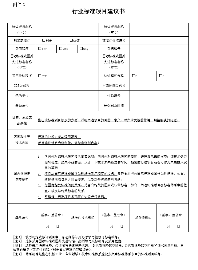 b.《行業(yè)標(biāo)準(zhǔn)項(xiàng)目建議書》(一式三份,原件簽字、蓋單位公章,附電子版),見附件3