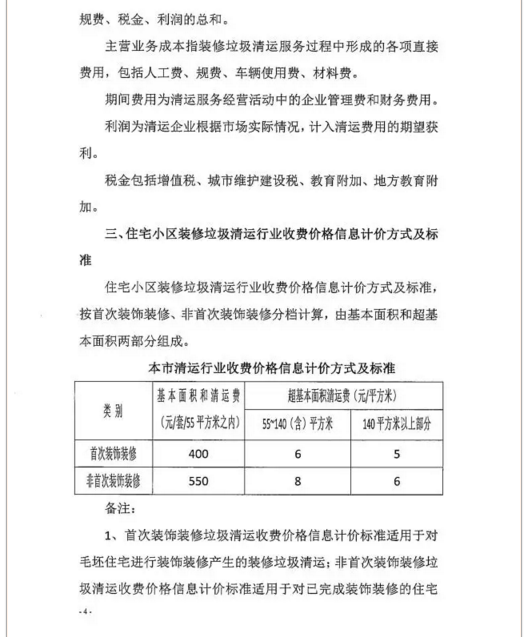 答3:《價(jià)格信息》明確,清運(yùn)費(fèi)涵蓋清運(yùn)單位將業(yè)主裝修中產(chǎn)生的非生活垃圾,從小區(qū)指定的堆放點(diǎn),運(yùn)到分揀、中轉(zhuǎn)場(chǎng)所所收取的費(fèi)用。不包括分揀、中轉(zhuǎn)、處置費(fèi)用,以及管理部門、清運(yùn)單位對(duì)小區(qū)裝修垃圾清運(yùn)進(jìn)行協(xié)調(diào)管理人員的費(fèi)用。