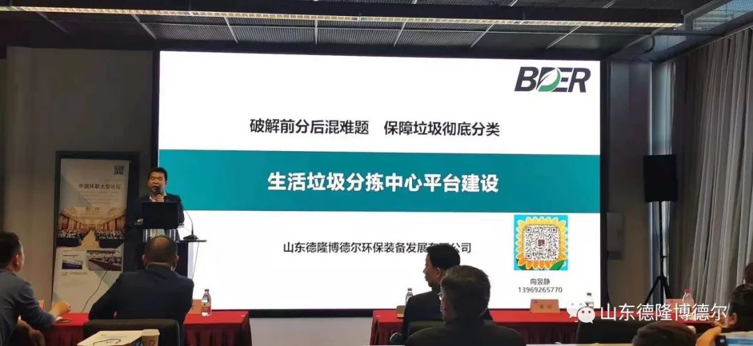 環(huán)博會期間,由中國環(huán)聯(lián)舉辦的固廢技術(shù)論壇在上海錦江酒店隆重召開,山東德隆博德爾環(huán)保裝備發(fā)展有限公司做為中國環(huán)聯(lián)副理事長單位應(yīng)邀參會。會上由上海博德爾集團(tuán)副總裁李偉從多角度分析和論述了當(dāng)前疫情下的垃圾處理形勢,以及未來一段時間內(nèi)垃圾處理行業(yè)的技術(shù)發(fā)展和要點(diǎn)。同時在中國環(huán)聯(lián)舉辦的專業(yè)沙龍上,由公司常務(wù)副總經(jīng)理向昱靜發(fā)表了生活垃圾分揀中心平臺建設(shè)的專題演講。