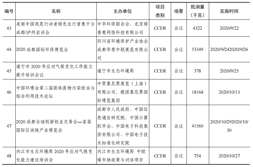 目前,四川已擁有碳中和會議、展覽、大數(shù)據(jù)中心、園區(qū)、景區(qū)、音樂會、婚禮等場景,雅安大數(shù)據(jù)產(chǎn)業(yè)園建成全國首個碳中和國家綠色數(shù)據(jù)中心,青城山—都江堰風景名勝區(qū)成為國內(nèi)首個碳中和景區(qū)。從集中度看,溫室氣體排放抵消量最大的10個活動(都江堰風景名勝區(qū)、第二屆國際城市可持續(xù)發(fā)展高層論壇、青城山風景名勝區(qū)、全國機關事務文化建設工作研討會、2020成都國際環(huán)保博覽會、四川省林業(yè)碳匯國際研討會、2019天府金融論壇主論壇及發(fā)布會、2020成都全球創(chuàng)新創(chuàng)業(yè)交易會—首屆國際區(qū)塊鏈產(chǎn)業(yè)博覽會、四川省鐵路產(chǎn)業(yè)投資集團公司資產(chǎn)經(jīng)營管理人員專題培訓班、四川省用能權交易開市活動及業(yè)務培訓會),共抵消溫室氣體2761.3噸,約占全部抵消量的57.2%;成都市碳中和活動超過60場次,最為集中,其次是遂寧市。從活動層次看,多以企事業(yè)單位活動為主;地方政府組織或參與的活動超過34場次;國際會議共有4場次,包括第二屆國際城市可持續(xù)發(fā)展高層論壇、2020成都國際環(huán)保博覽會、四川省林業(yè)碳匯國際研討會、2020成都全球創(chuàng)新創(chuàng)業(yè)交易會—首屆國際區(qū)塊鏈產(chǎn)業(yè)博覽會、第三屆國際城市可持續(xù)發(fā)展高層論壇。環(huán)境類活動碳中和超過40場次,金融機構參與活動也相對較多,凸顯了金融領域和環(huán)境領域的理念引領作用。