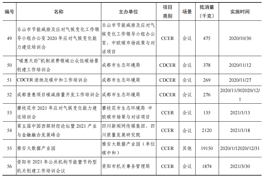 《研究報告》顯示,截至2021年7月底,全省累計實施社會活動碳中和98場(次),參與人數(shù)超過8621人次,抵消溫室氣體排放4828.9噸二氧化碳當量,相當于100萬人停駛一天小汽車產(chǎn)生的二氧化碳排放。其中,依托四川聯(lián)合環(huán)境交易所“點點”碳中和公益服務平臺線上實施96場次,成為碳中和的主流方式。碳中和場景也十分多樣,不斷涌現(xiàn)會議、展覽、大數(shù)據(jù)中心、園區(qū)、景區(qū)、音樂會、婚禮等碳中和場景,雅安大數(shù)據(jù)產(chǎn)業(yè)園建成全國首個碳中和國家綠色數(shù)據(jù)中心,青城山—都江堰風景名勝區(qū)成為國內(nèi)首個碳中和景區(qū)。抵消的產(chǎn)品除了國家核證自愿減排量,還有“碳惠天府”核證減排量和林業(yè)碳匯等本地化產(chǎn)品。