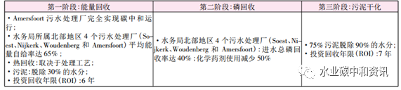 NEWs發(fā)展的終極目標(biāo)是在同一污水處理廠內(nèi)實(shí)現(xiàn)營養(yǎng)物、能源和水三位一體生產(chǎn)。Vallei & Eem 水務(wù)局計劃以Amersfoort污水處理廠為案例,探求新技術(shù)與新工藝,以使污水廠至少能達(dá)到能量自給自足的水平。具體目標(biāo)是2014年Amersfoort污水廠將以能量工廠方式運(yùn)行,除能量回收外,營養(yǎng)物(N、P)也予以回收利用。同時Vallei&Eem水務(wù)局與荷蘭應(yīng)用水研究基金會(STOWA)已開始執(zhí)行Omzet-Amersfoort合作計劃(2011——2016),這一計劃主要在Amersfoort污水廠中實(shí)施,將其轉(zhuǎn)化為能源與資源回收工廠。其預(yù)期結(jié)果見下表。