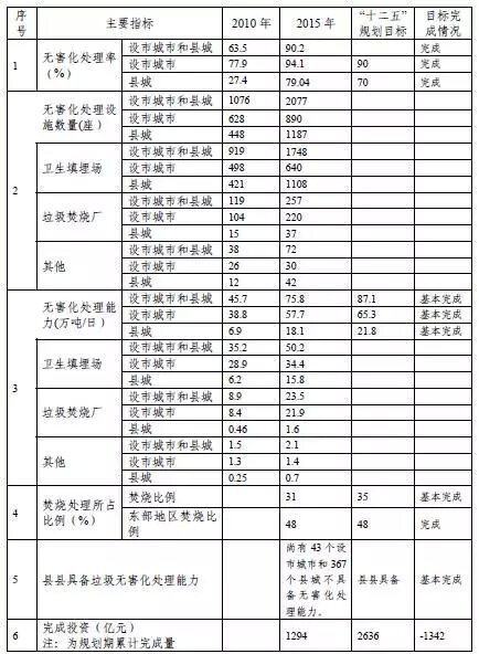 城鎮(zhèn)生活垃圾無(wú)害化處理設(shè)施是城鎮(zhèn)發(fā)展不可或缺的基礎(chǔ)設(shè)施,是人民安全健康生活的重要保障。“十二五”以來(lái),在國(guó)務(wù)院相 關(guān)部門(mén)和地方各級(jí)人民政府的大力推動(dòng)下,各地加大資金投入,城鎮(zhèn)生活垃圾無(wú)害化處理工作取得了重大進(jìn)展,垃圾收運(yùn)體系日趨完善,處理設(shè)施數(shù)量和能力快速增長(zhǎng),生活垃圾無(wú)害化處理率顯著提高。截至 2015 年,全國(guó)設(shè)市城市和縣城生活垃圾無(wú)害化處理能力達(dá)到 75.8 萬(wàn)噸/日,比 2010 年增加 30.1 萬(wàn)噸/日,生活垃圾無(wú)害化處理率達(dá)到 90.2%,其中設(shè)市城市 94.1%,縣城 79.0%,超額完 成“十二五”規(guī)劃確定的無(wú)害化處理率目標(biāo)。但同時(shí)也應(yīng)看到,隨著城鎮(zhèn)化的快速發(fā)展和人民生活水平日益提高,我國(guó)城鎮(zhèn)生活垃圾 清運(yùn)量仍在快速增長(zhǎng),生活垃圾無(wú)害化處理能力和水平仍相對(duì)不足,大部分建制鎮(zhèn)的生活垃圾難以實(shí)現(xiàn)無(wú)害化處理,垃圾回收利用率有待提高。為此,“十三五”期間應(yīng)按照公共服務(wù)均等化的要求,繼續(xù)加大生活垃圾無(wú)害化處理能力建設(shè),提升運(yùn)營(yíng)管理水平,拓展服務(wù)范圍,加快垃圾收運(yùn)處理領(lǐng)域的市場(chǎng)化進(jìn)程,推進(jìn)生活垃圾源頭分類(lèi),提高資源化利用水平,最終實(shí)現(xiàn)垃圾的減量化、資源化和無(wú)害化。