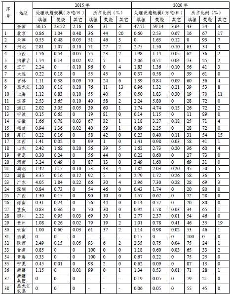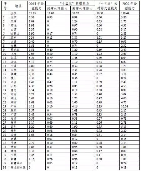 附表2 “十三五”全國(guó)城鎮(zhèn)生活垃圾處理設(shè)施規(guī)模單位:萬(wàn)噸/日