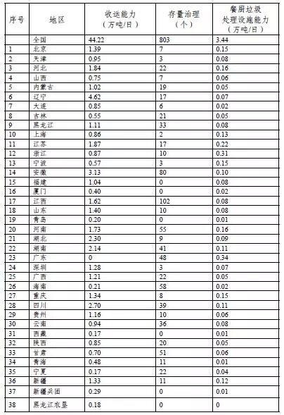 新增餐廚垃圾處理能力3.44萬(wàn)噸/日。