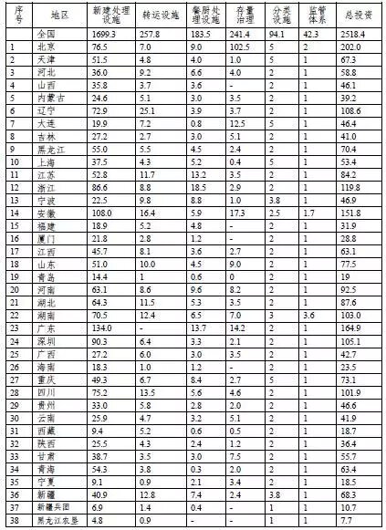 全國(guó)城鎮(zhèn)生活垃圾無(wú)害化處理設(shè)施建設(shè)總投資約2518.4億元,比征求意見(jiàn)稿增長(zhǎng)三成。