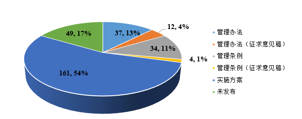 生活垃圾分類正由點到面逐步推開。據(jù)E20研究院觀察,截止到目前為止,297個地級以上城市其中有49個城市出臺垃圾分類管理辦法(其中12個城市處于征求意見稿階段),38個城市出臺垃圾分類管理條例(其中4個城市處于征求意見稿階段),161個城市公布垃圾分類實施方案,49個城市目前尚未公布相關(guān)法律法規(guī)制度,制度出臺城市占比達84%。