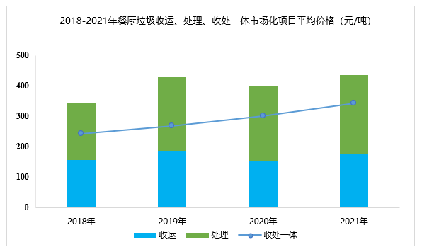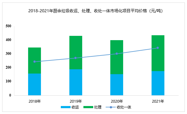 據(jù)E20數(shù)據(jù)庫統(tǒng)計,廚余垃圾收運市場的價格與地區(qū)相關(guān)性較大,平均收運價格145元/噸,處理環(huán)節(jié)的平均中標(biāo)價為239元/噸,收處一體化價格為340元/噸,略高于餐廚垃圾的平均水平,并且呈逐年上漲的趨勢。因此,隨著垃圾分類工作的全面推進及中標(biāo)價格的上漲,預(yù)計“十四五”期間廚余垃圾處理市場將迎來新一輪推動。