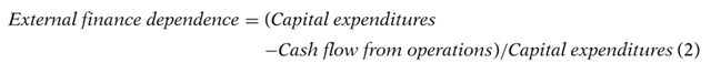 為了衡量企業(yè)能夠在多大程度上自行籌集資金,作者按照Whited(2006)和Duchin, Ozbas和Sensoy(2010)的方法構(gòu)建了如下指標(biāo),如式(3)所定義。作者進(jìn)一步將企業(yè)劃分為現(xiàn)金流流動性強(qiáng)弱劃分:如果企業(yè)的指數(shù)高于中位數(shù),則被劃分為高流動性,否則被劃分為低流動性。