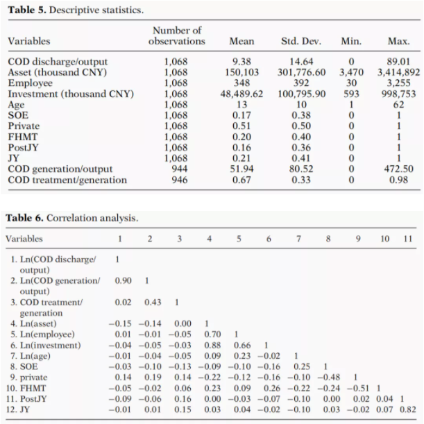 變量及其相關(guān)性的統(tǒng)計描述見文中的表5和表6。