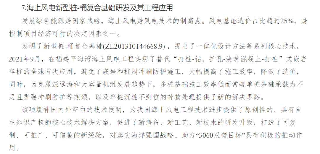日前,華東院海上風(fēng)電“新型樁-桶復(fù)合基礎(chǔ)研發(fā)及其工程應(yīng)用”入選2021年度中國十大海洋科技進(jìn)展。這項由華東院發(fā)明并創(chuàng)新設(shè)計的核心技術(shù),不僅大幅提高了海上施工作業(yè)效率,也為破解海上風(fēng)電走向深遠(yuǎn)海、大機(jī)組過程中常規(guī)單樁基礎(chǔ)承載力不足等難題,提供可復(fù)制、可推廣、可借鑒的經(jīng)驗與思路,為國家海洋技術(shù)領(lǐng)域發(fā)展、助力“3060雙碳目標(biāo)”,發(fā)揮積極作用。
