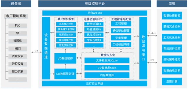 用戶通過在控制平臺(tái)上新建工程項(xiàng)目,定義采集變量、按需選取功能運(yùn)算塊(FB)或定義程序腳本(Script),配置各項(xiàng)運(yùn)行參數(shù)等一系列工程建模過程,實(shí)現(xiàn)水廠的邏輯冗余控制、工藝優(yōu)化控制、控制回路監(jiān)視、自控性能分析、數(shù)據(jù)趨勢(shì)分析和全廠閉環(huán)控制等功能。